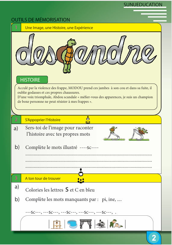 L’enfant associe image – histoire – mot – sens pour mémoriser durablement l’orthographe avec une fiche d’exercices.